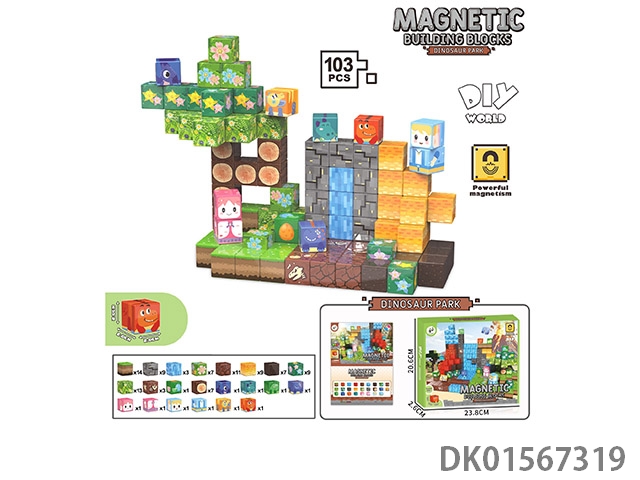2CM磁力方块拼搭积木DIY穿越恐龙世界103PCS