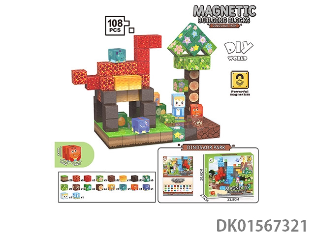 2CM磁力方块拼搭积木DIY穿越恐龙世界108PCS