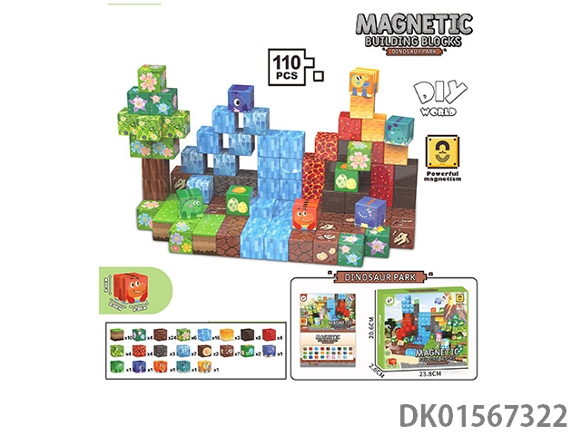 2CM磁力方块拼搭积木DIY穿越恐龙世界110PCS