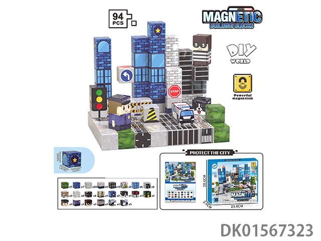 2CM磁力方块拼搭积木DIY警察主题94PCS
