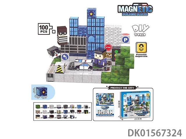 2CM磁力方块拼搭积木DIY警察主题100PCS