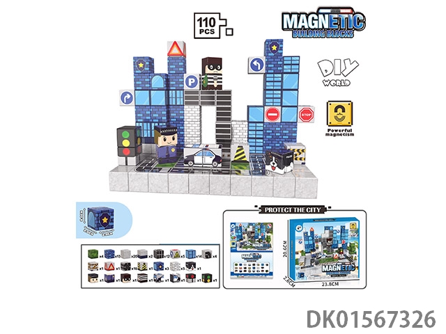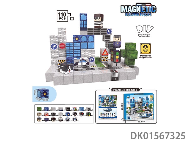 2CM磁力方块拼搭积木DIY警察主题110PCS