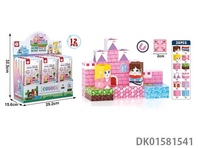 2CM铁盒旅行套装磁力方块粉色城堡38PCS(12只/展示盒)
