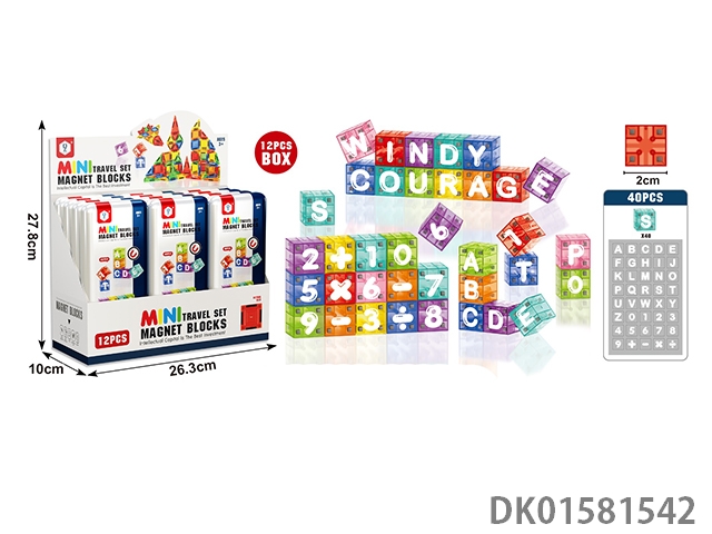 2CM铁盒旅行套装磁力方块数字英文40PCS(12只/展示盒)