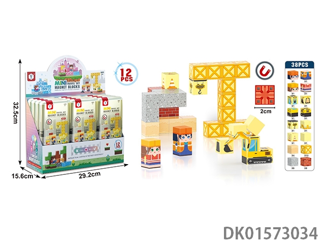2CM铁盒旅行套装磁力方块工程38PCS(12只/展示盒)