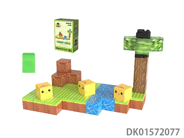 47PCS磁性积木套装带指尖陀螺旋转器:草地牧场