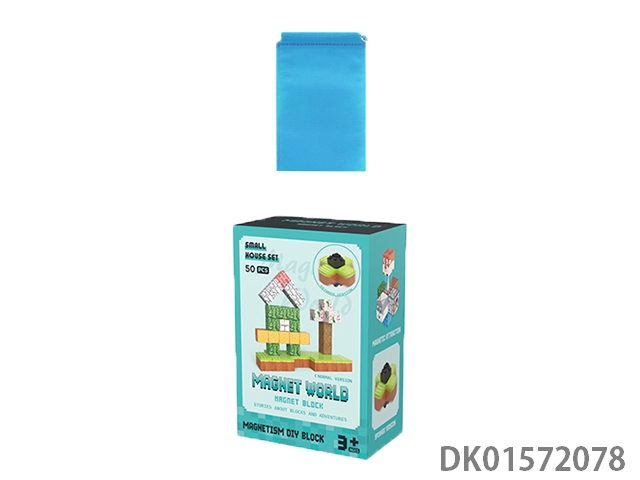 49PCS磁性积木套装带指尖陀螺旋转器:草地木屋