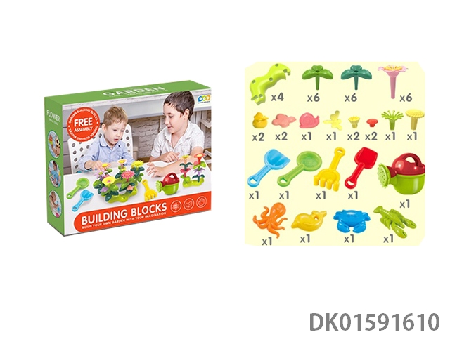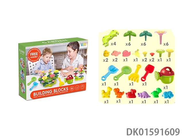 DIY积木花园配浇花壶配沙滩玩具