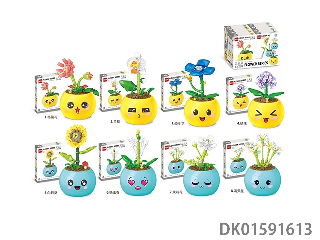 儿童益智DIY拼装自装小颗粒积木 小颗粒表情盆栽积木花
