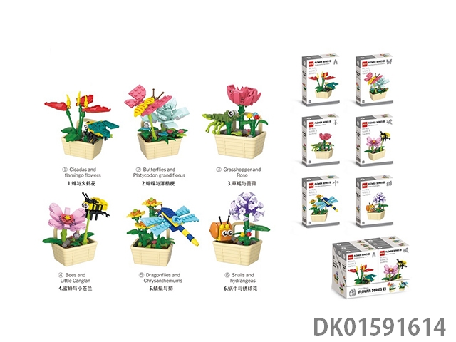 儿童益智DIY拼装自装积木 昆虫与花小颗粒积木