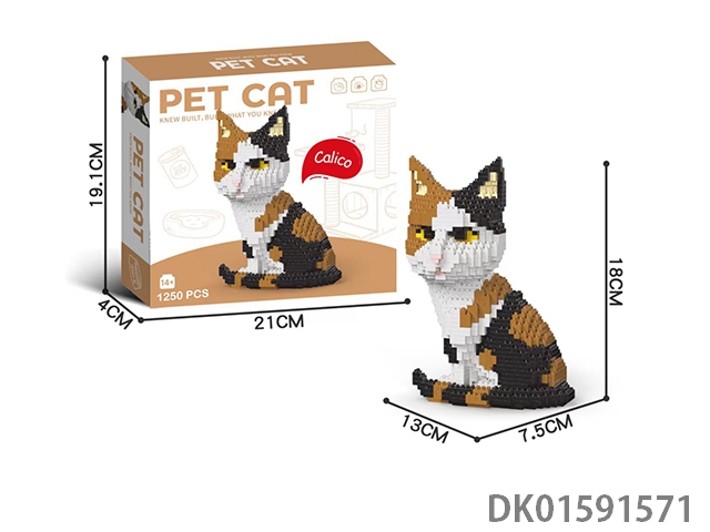 三花猫DIY拼装积木益智玩具小颗粒积木猫咪
