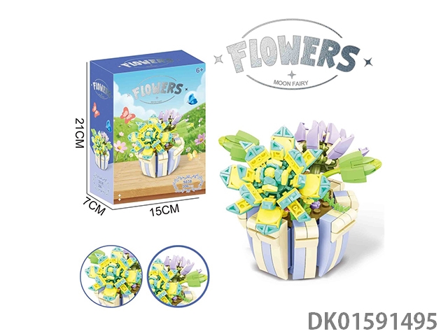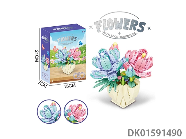 儿童益智小颗粒拼插积木花仿真玫瑰花玉兰花兼容某高积木模型玩具