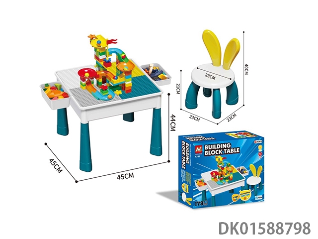 45*45积木桌全大面板 1桌+1椅C款兔椅+4增高+4收纳(3号)+178滑道(丙料)