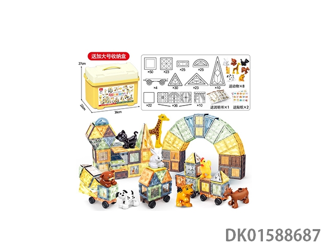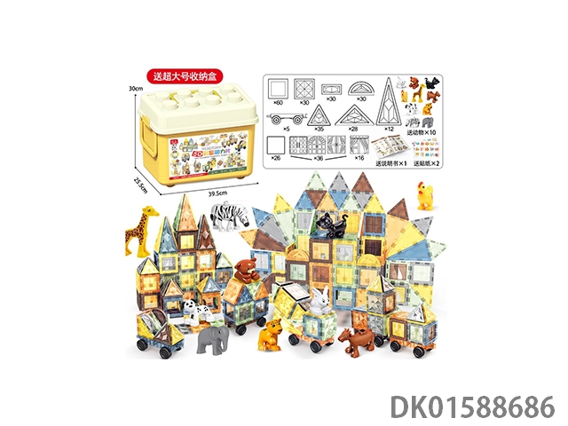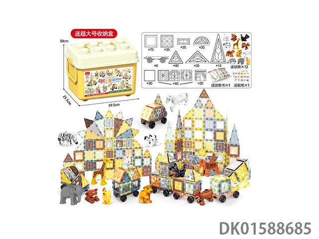 5D钻面磁力片258片+4车【加大号收纳桶】+送8动物+送贴纸+说明书