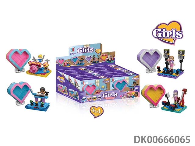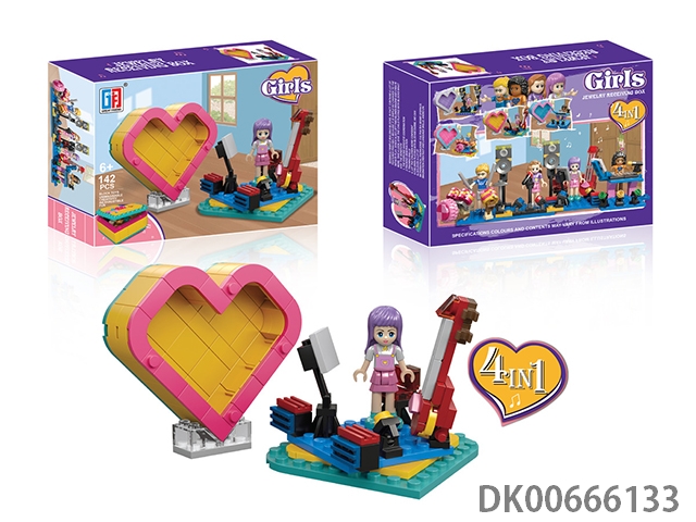益智积木音乐女孩乐器系列配爱心桃收纳盒(141-157PCS)(可4款混装)8pcs