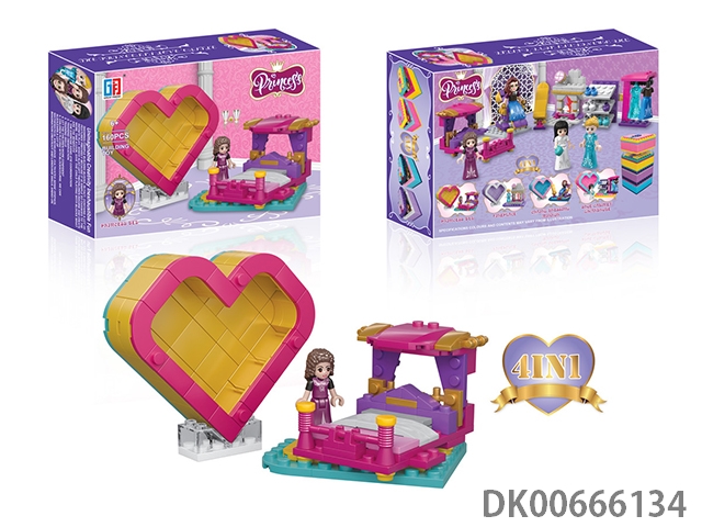 益智积木公主女孩睡床配马克龙爱心桃收纳盒(160PCS)(可4款混装)