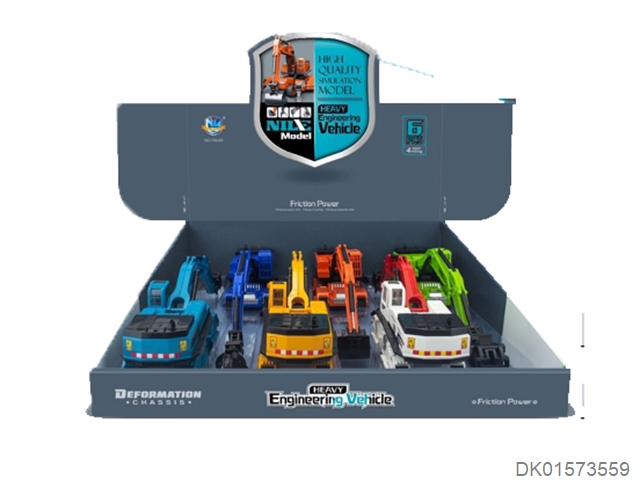 高品质仿真模型惯性变形重型工程车(6只)工程惯性车惯性变形车(6PCS/BOX)