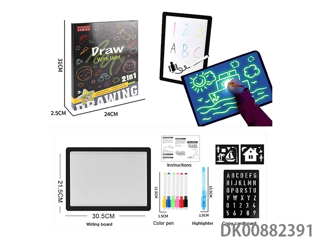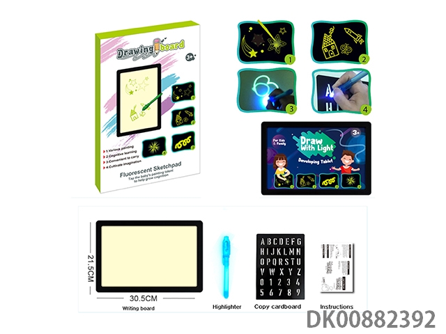 DrawWithLightFun夜光写字板荧光绘画板(2合1)带彩色笔