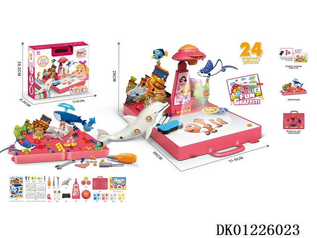 女孩拆装投影画画拼图箱