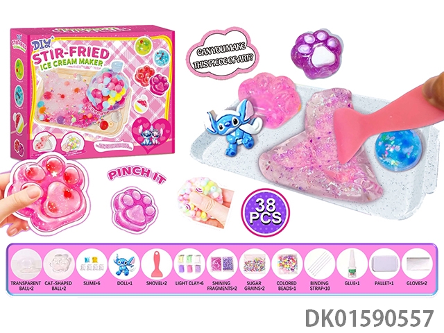DIY史迪仔炒冰球史莱姆猫爪捏捏乐解压套装