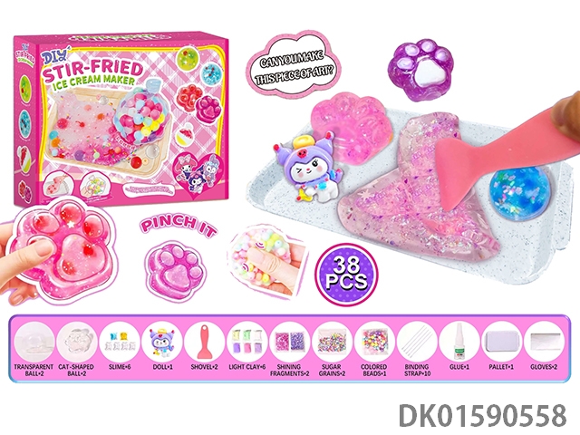 DIY库洛米炒冰球史莱姆猫爪捏捏乐解压套装