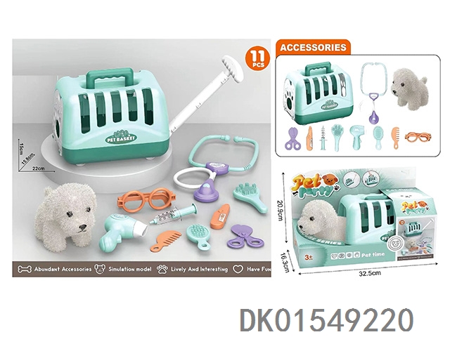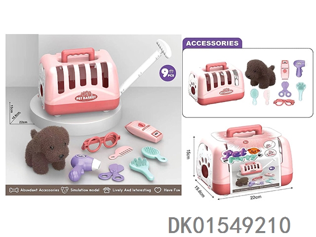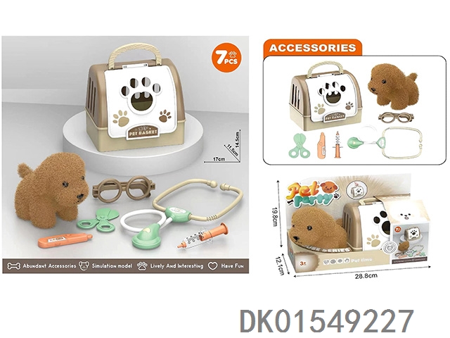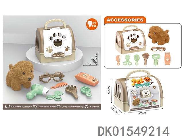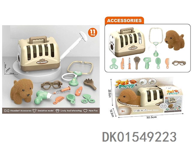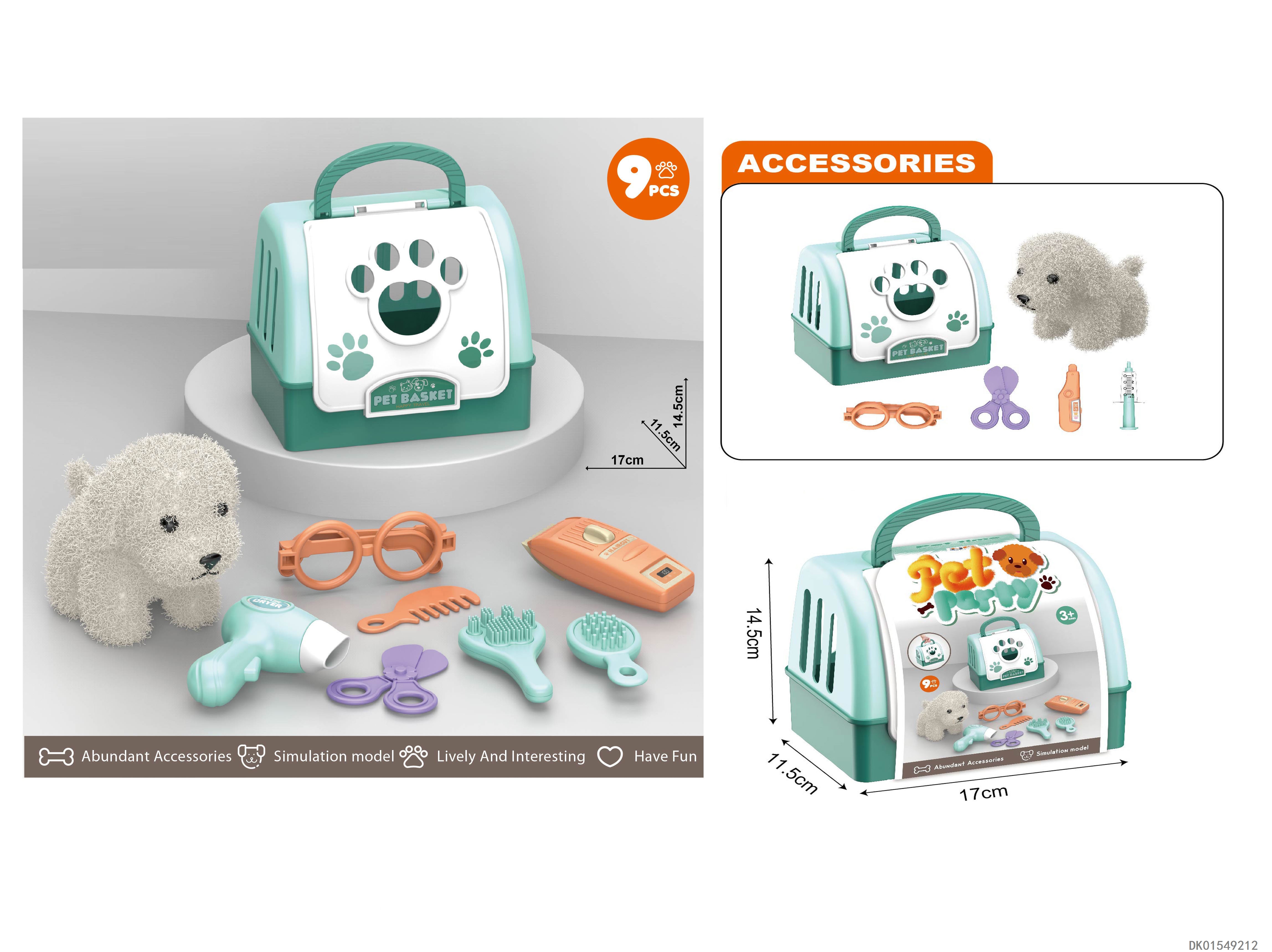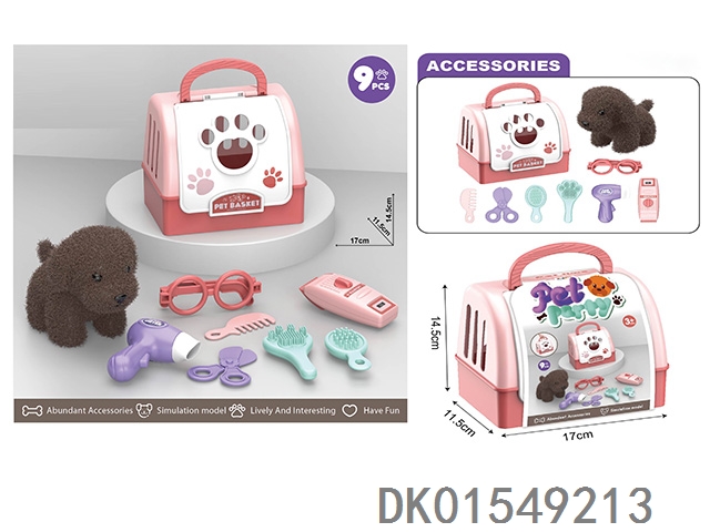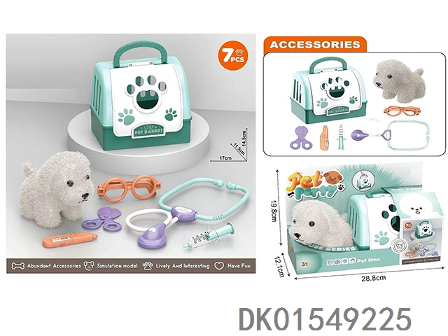 毛绒玩具宠物狗配理发套装+医具套装+拖拉手提狗笼 (2合1)过家家儿童玩具