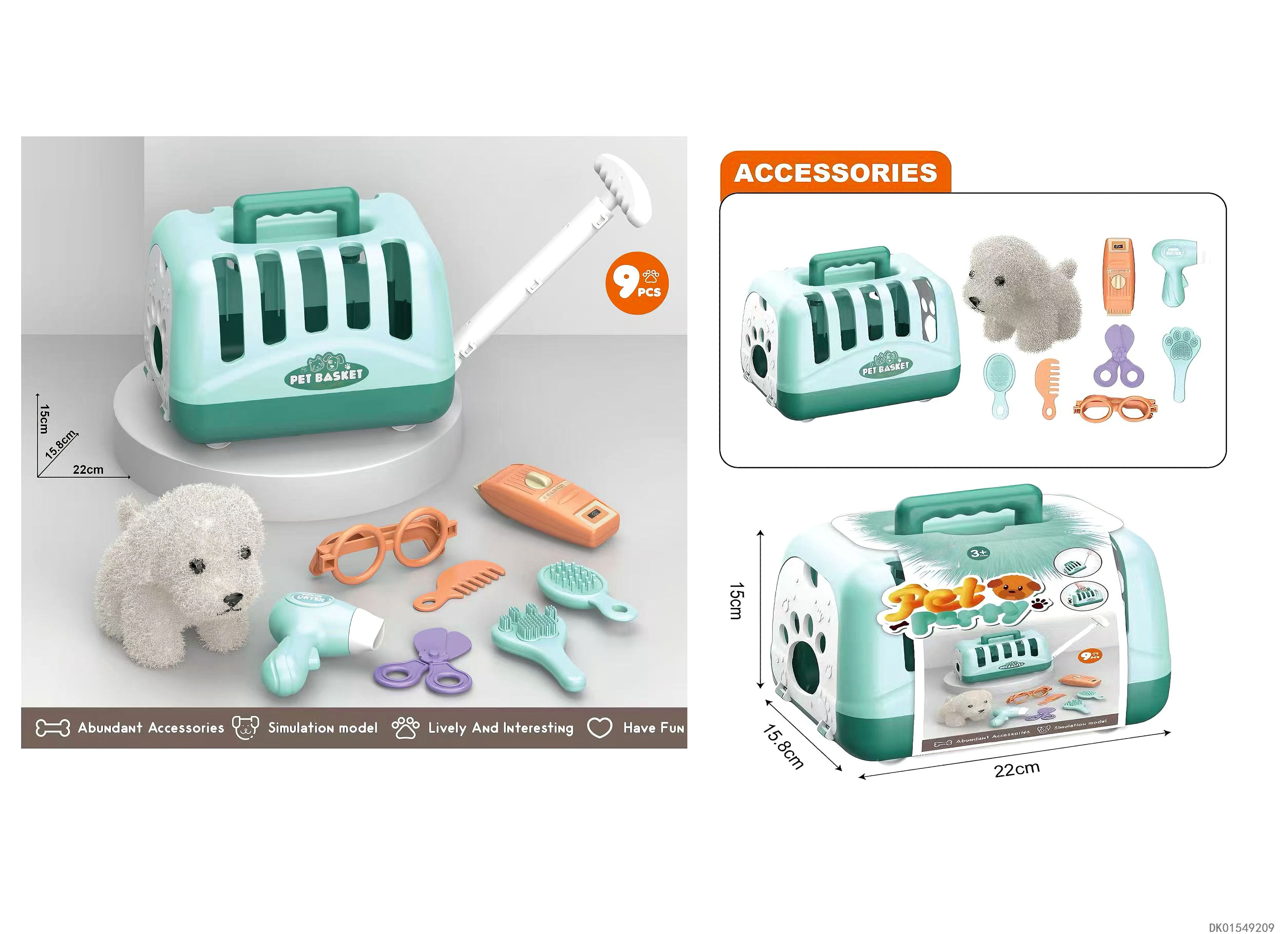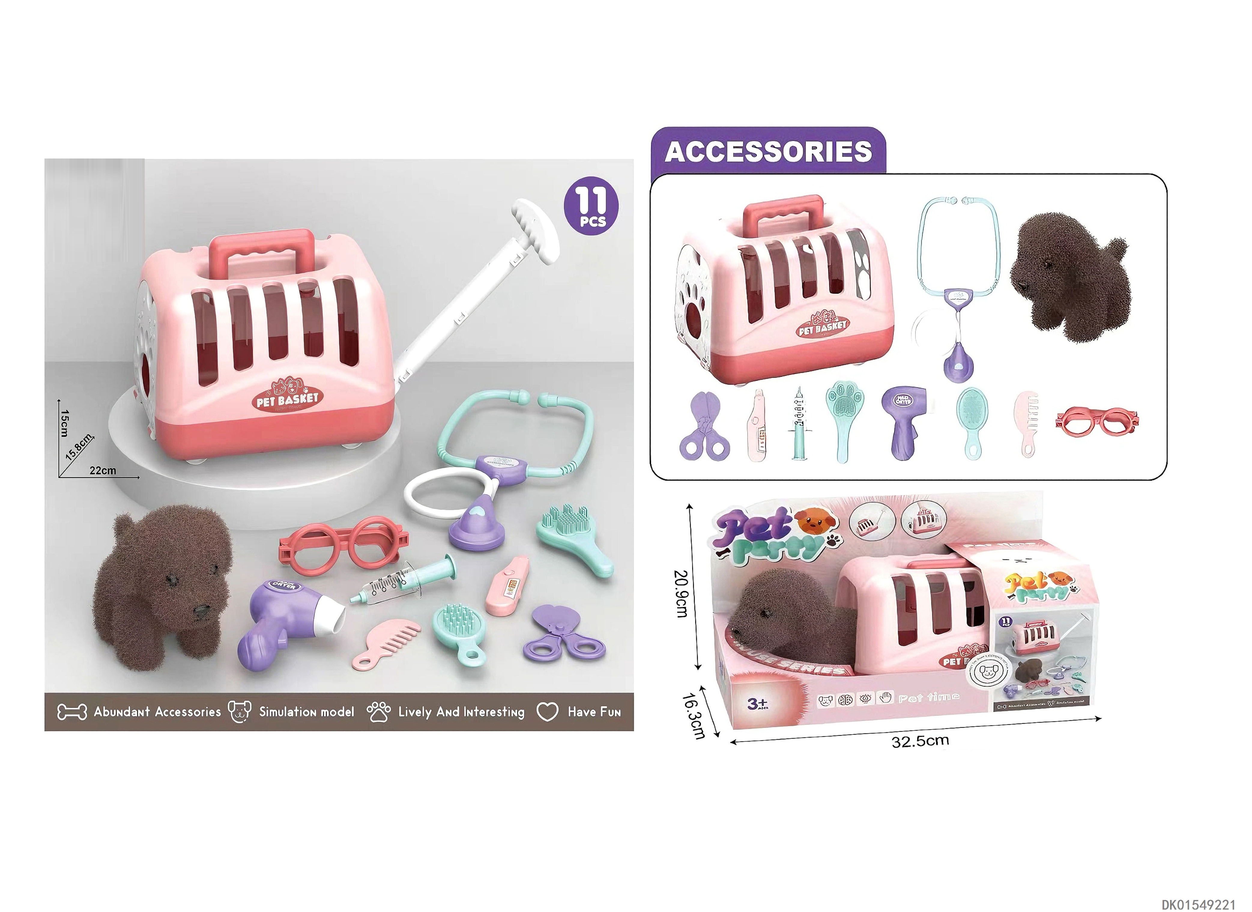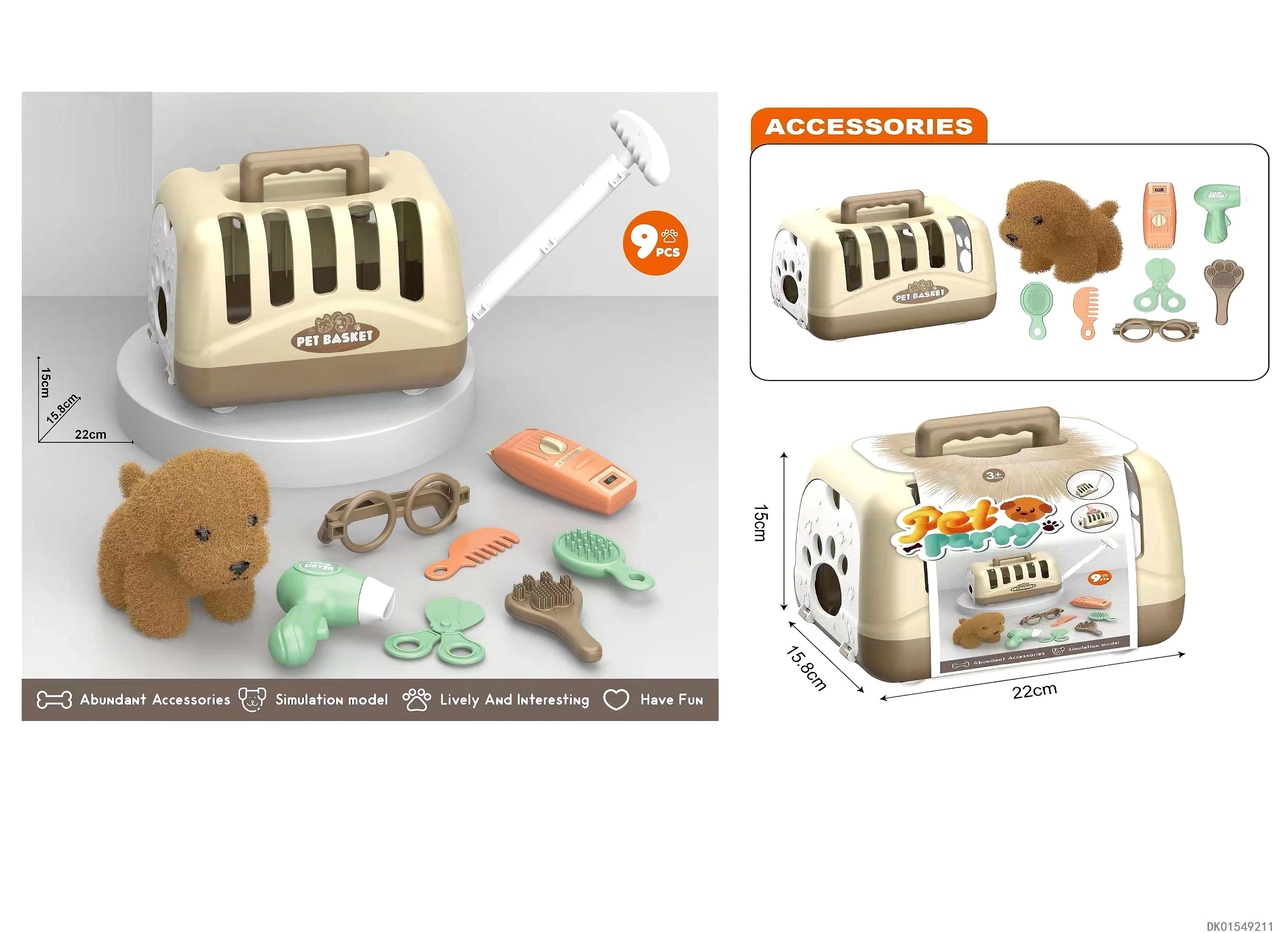 毛绒玩具宠物狗配理发套装+医具套装+拖拉手提狗笼 (2合1)过家家儿童玩具