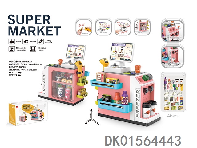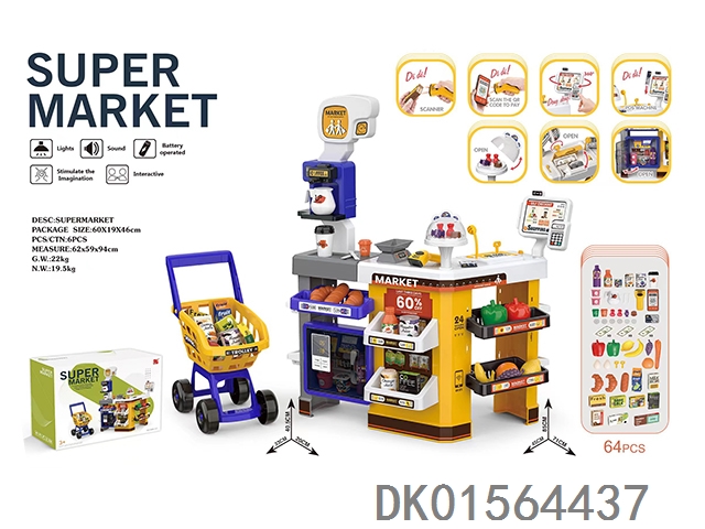 豪华超市组合套装+购物车+带电扫描器、收银刷卡机(2粒AAA+2粒AA不包电)