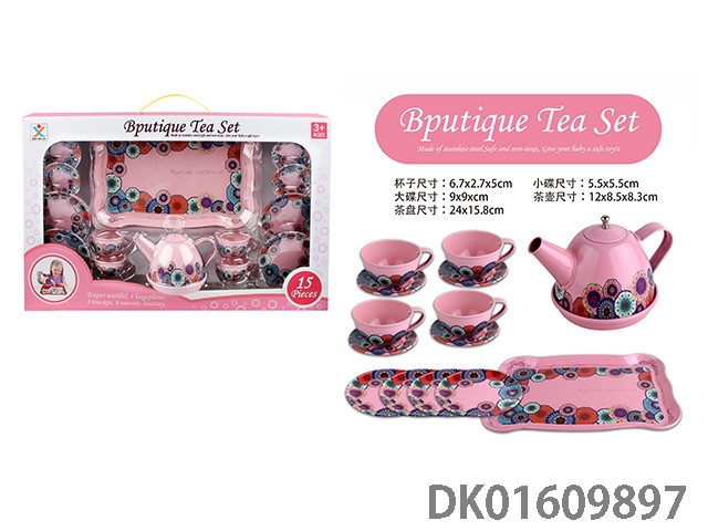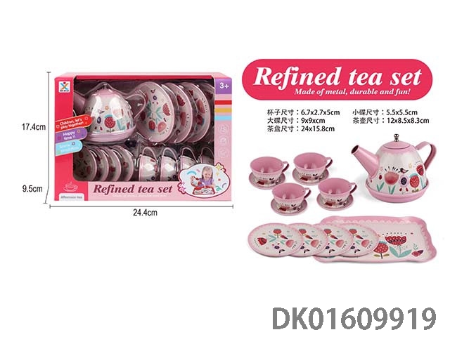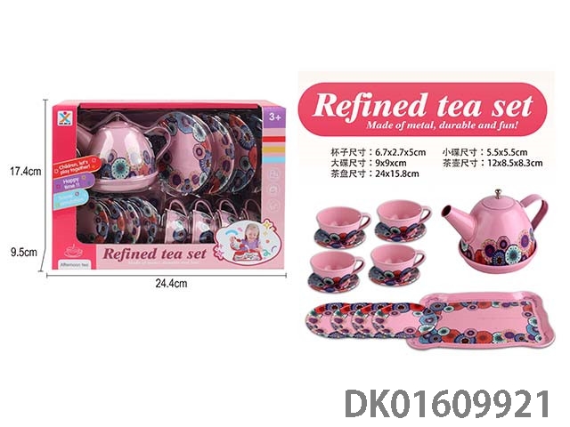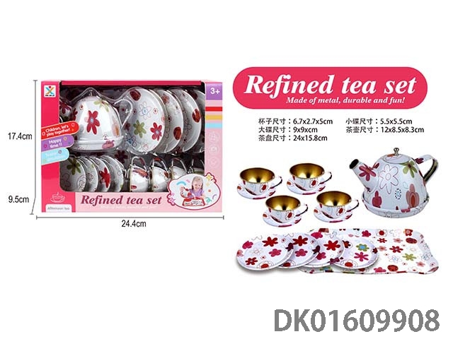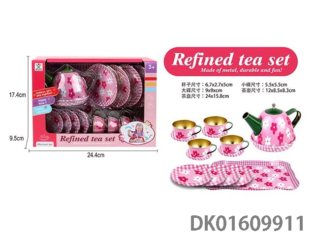 过家家马口铁粉底花茶具