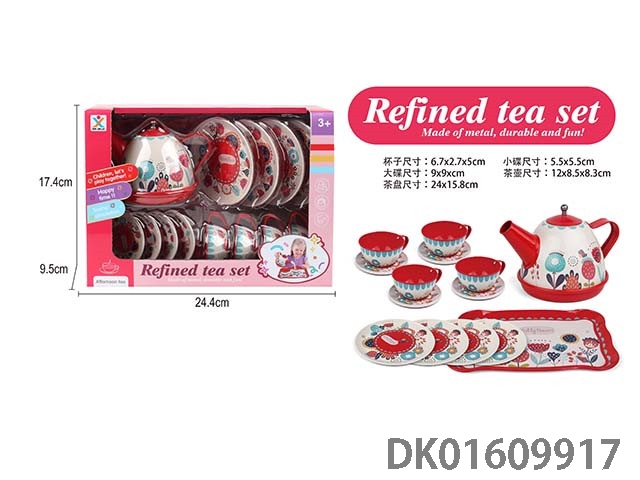 过家家马口铁大红古典花茶具