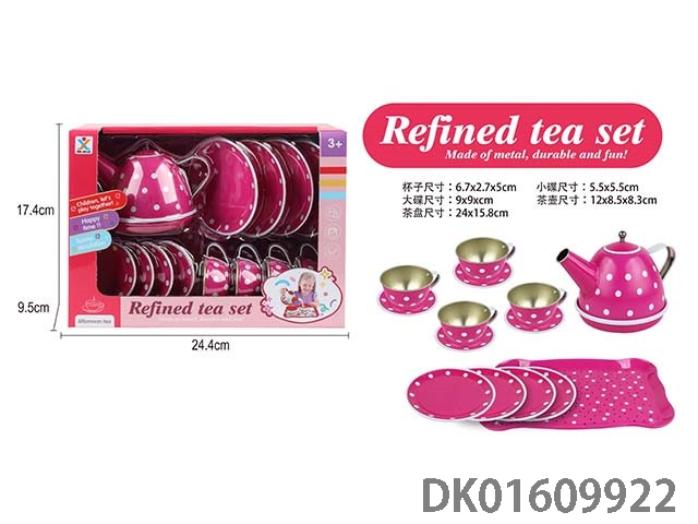 过家家马口铁大红点茶具