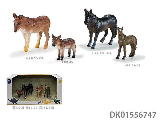 4只软料PVC彩绘实心驴马家庭亲子套装