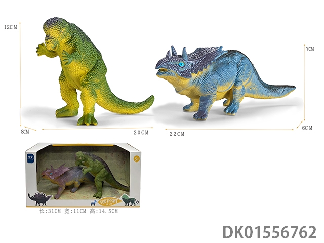 2只7寸软料PVC彩绘恐龙(带BB哨)