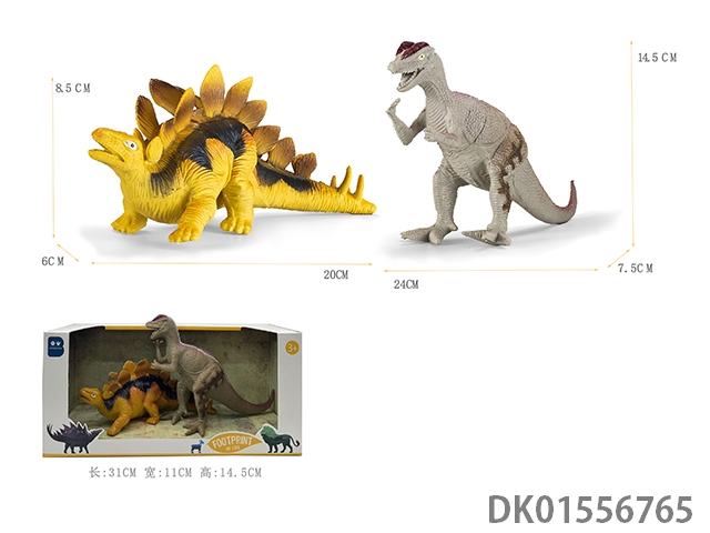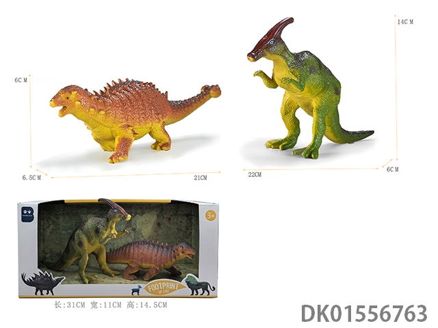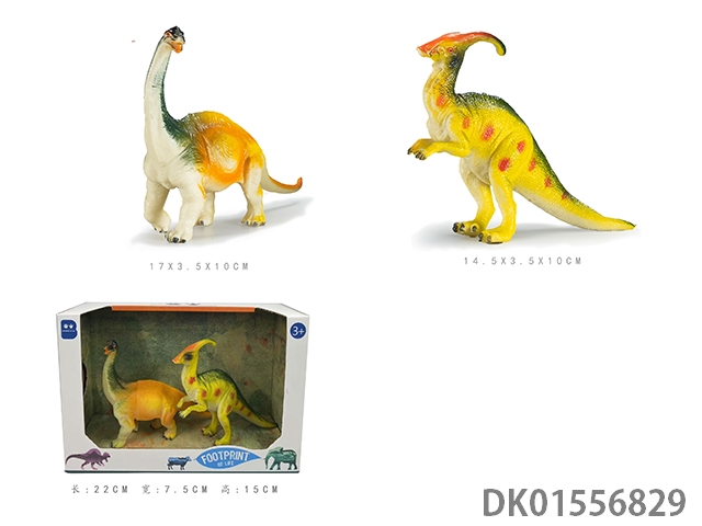2只6寸彩绘软料PVC恐龙(长颈龙 副栉龙)