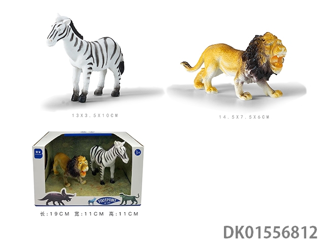 2只6寸彩绘软料PVC野生动物(狮子 斑马)
