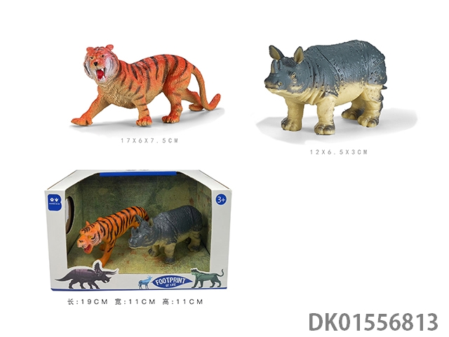 2只6寸彩绘软料PVC野生动物(老虎 犀牛)