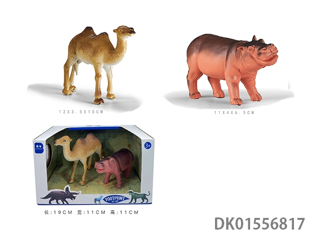 2只6寸彩绘软料PVC野生动物(河马 骆驼)