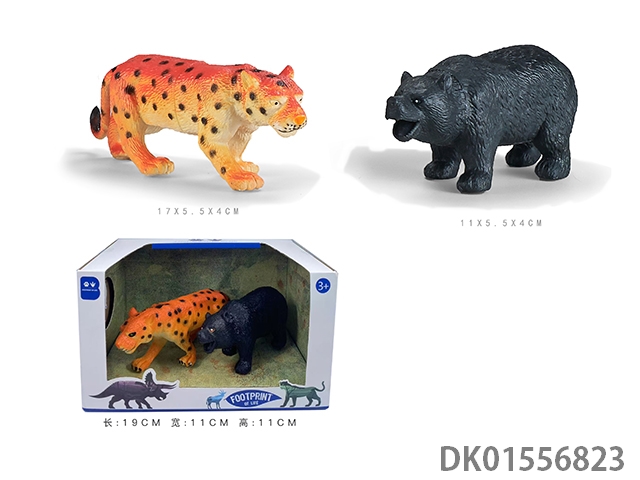 2只6寸彩绘软料PVC野生动物(豹 黑熊)