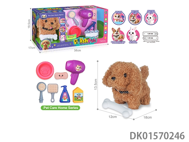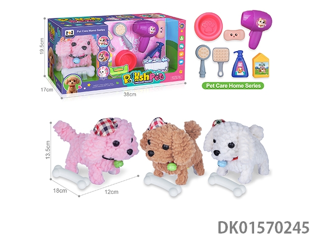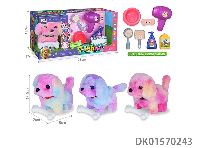 电动仿真毛绒宠物七彩狗浴室套装
