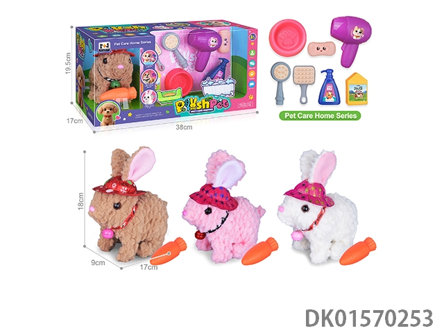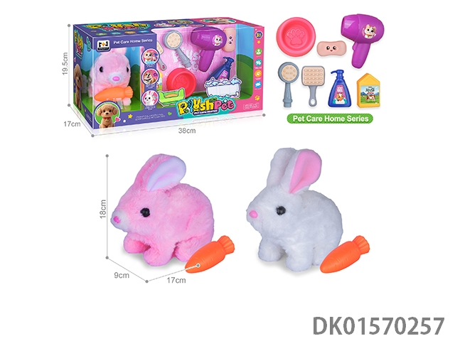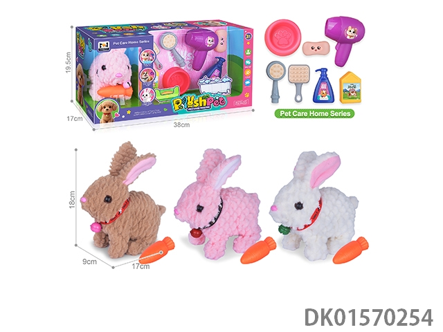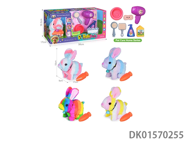 电动仿真毛绒宠物七彩带铃铛兔浴室套装