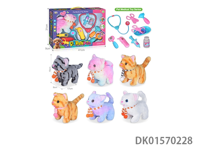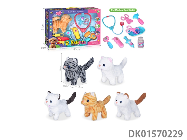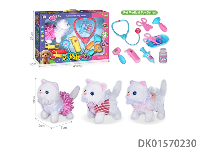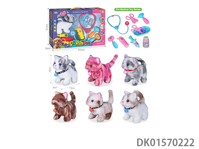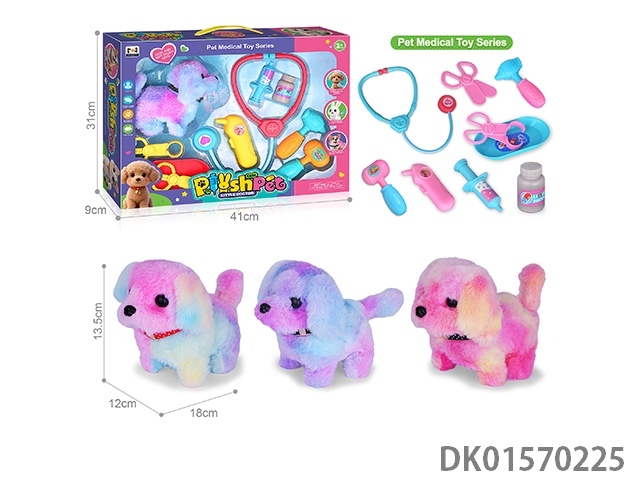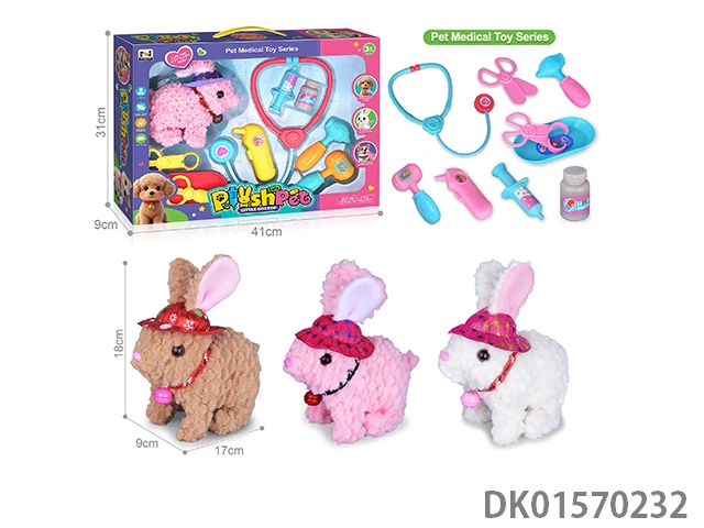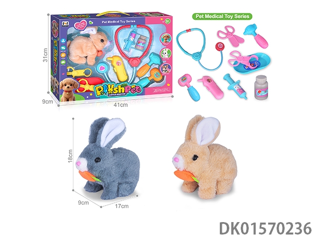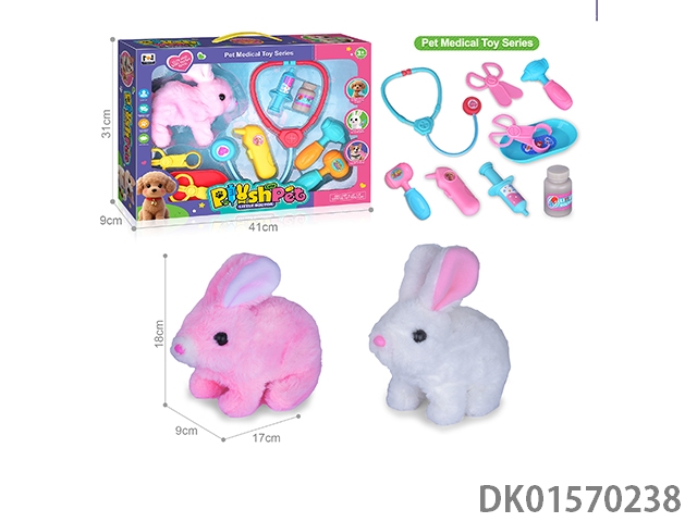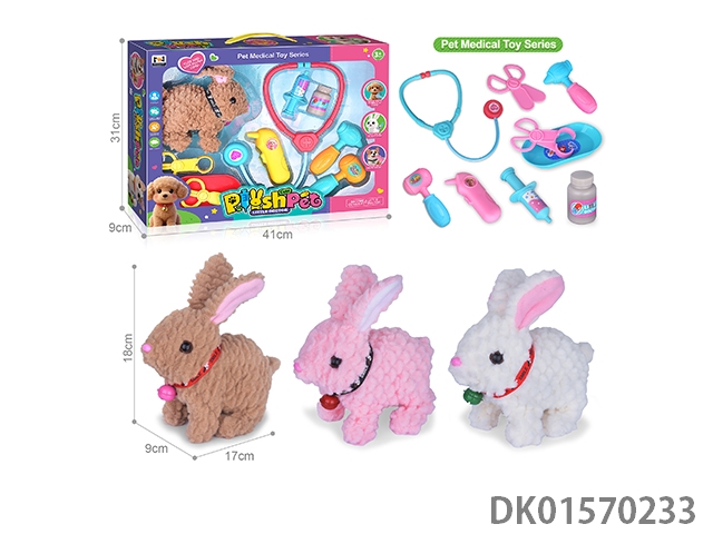 电动仿真毛绒宠物七彩带铃铛兔医具套装