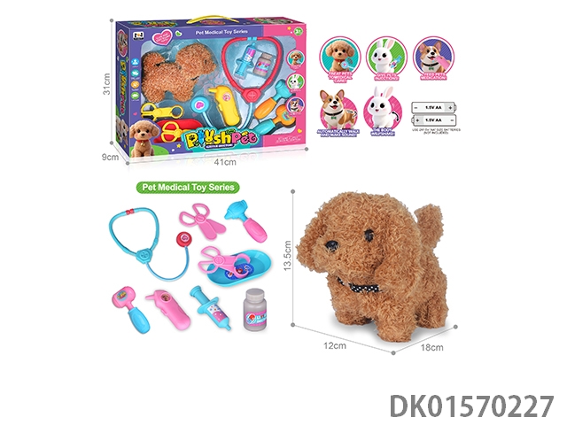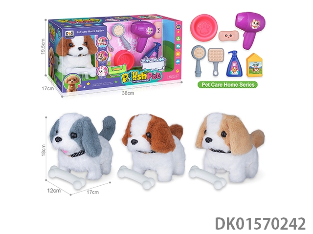 电动仿真毛绒宠物狗带铃铛帽子医具套装