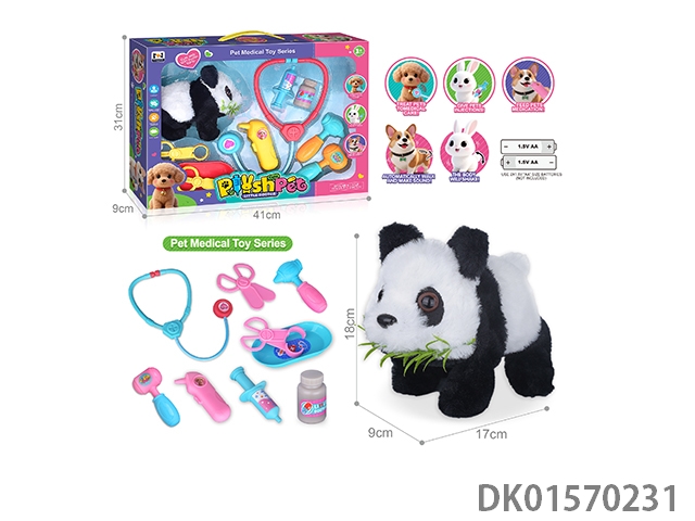 电动仿真毛绒宠物格子兔带铃铛医具套装