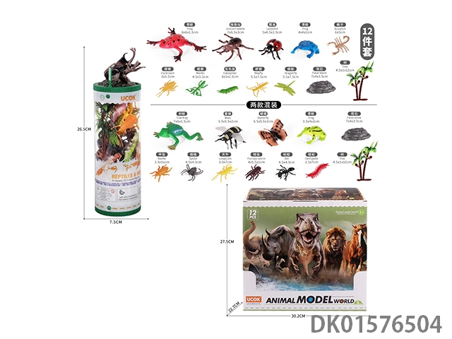 12只2寸昆虫爬行模型套装2款混装(PVC筒+动物盖)12pcs