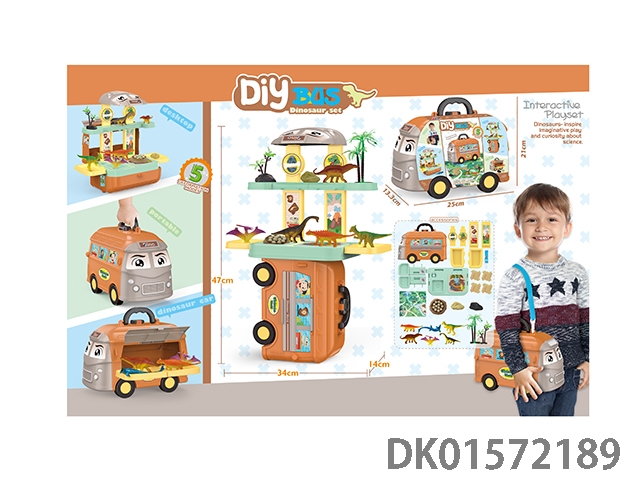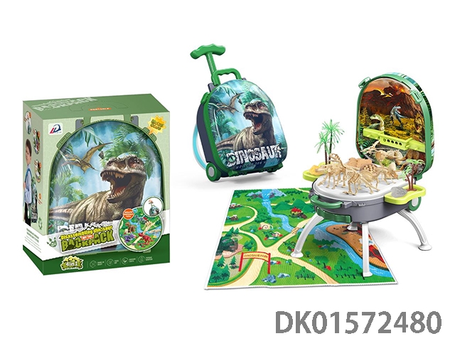 4合1手提拉杆合金背包套装(随机3只拆装骨架恐龙)恐龙场景