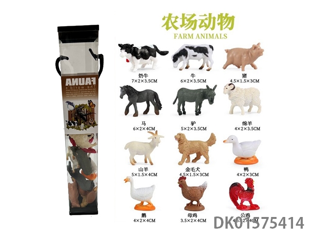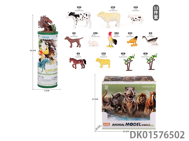 12只2寸农场动物模型套装(PVC筒+动物盖)12PCS
