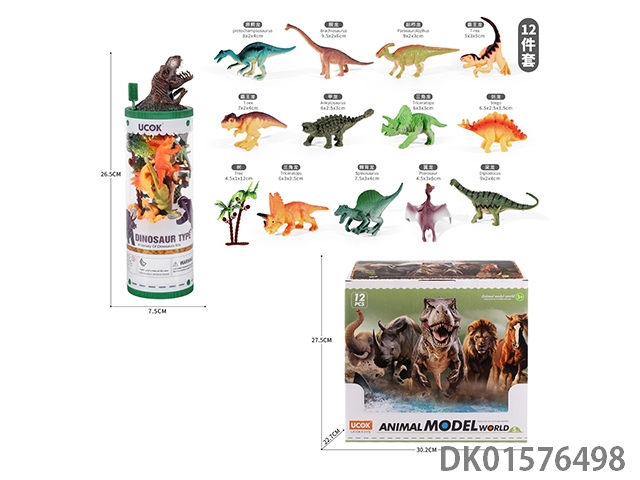 12只2寸恐龙模型套装(PVC筒+动物盖)12pcs