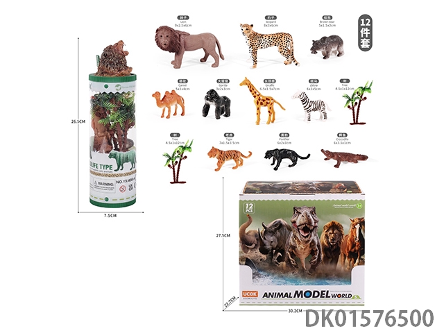 12只2寸野生动物模型套装(PVC筒+动物盖)12PCS