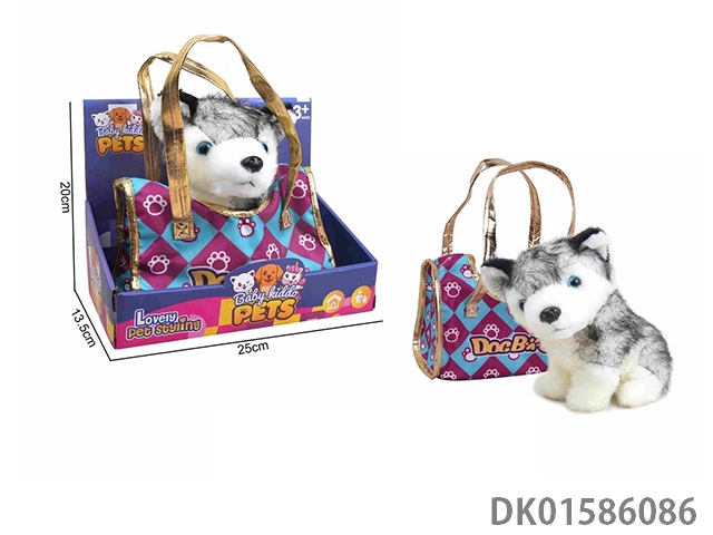 25cm仿真哈士奇狗毛绒玩具+手提袋