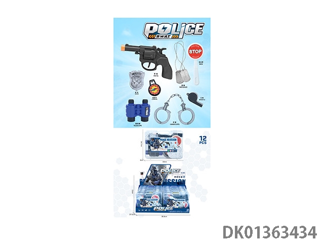 警察套(手铐+吊牌+停车牌+打响左轮枪+口哨+警徽+指南针+手表+炸弹)12只装
